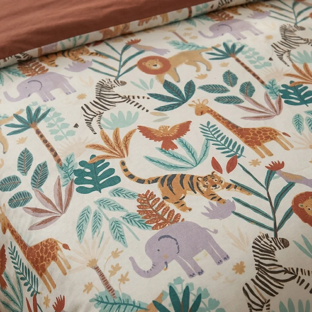 • Jungle-themed print with animals and tropical design